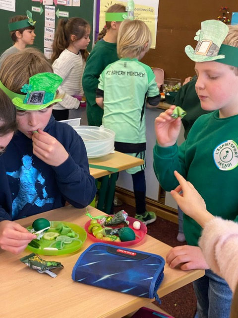Am 17. März wurde an unserer Grundschule der St Patrick’s Day auf ganz besondere Weise gefeiert. Vor allem die bilingualen Klassen hatten sich im Vorfeld viele kreative Ideen einfallen lassen, um diesen irischen Feiertag lebendig werden zu lassen.